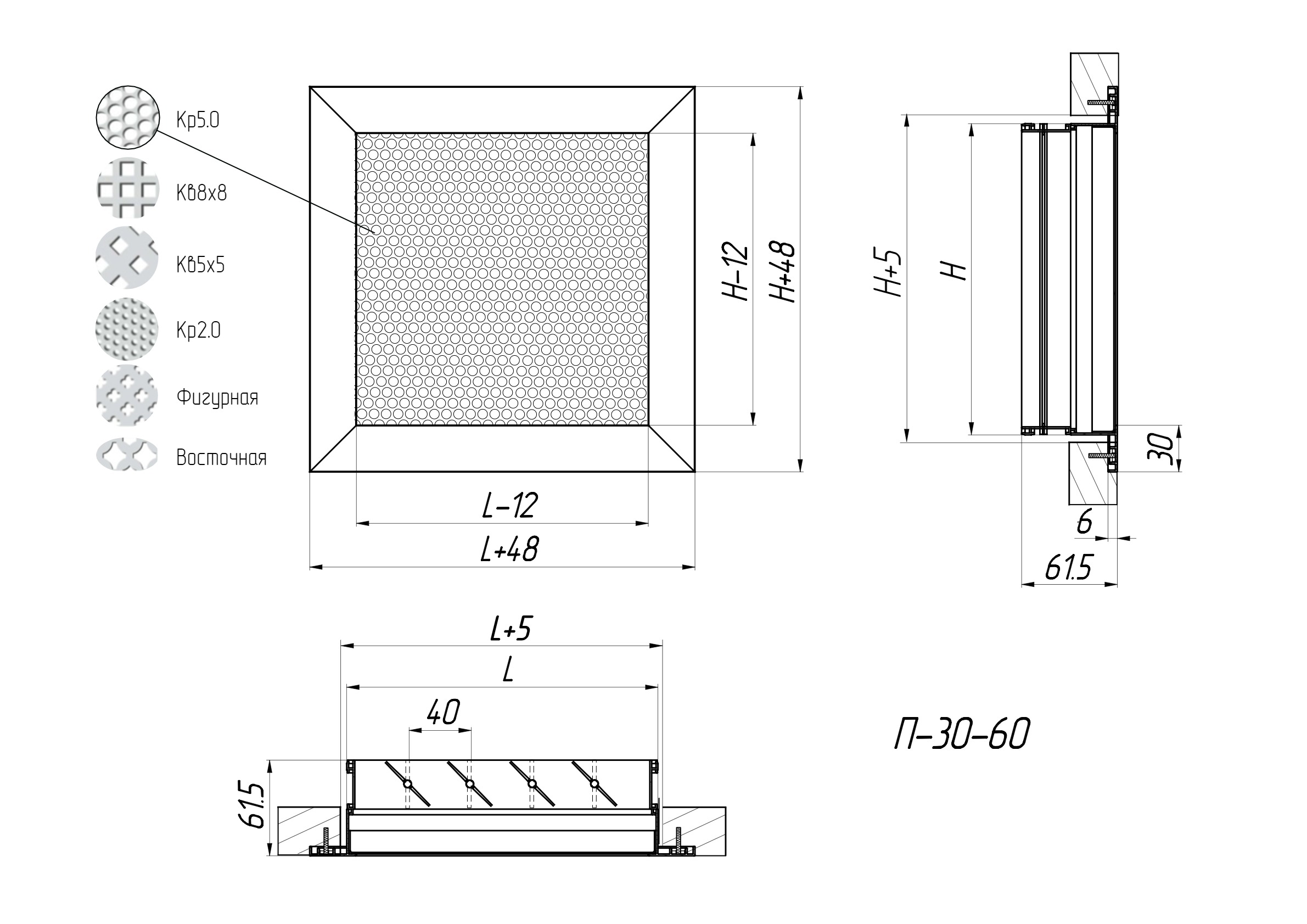 Grila cu un cadru 30-30 poate fi echipată cu un al doilea rând de lamele mobile pentru reglarea volumului de alimentare cu aer, caz în care grila va fi denumită P-30-60 reglabilă.