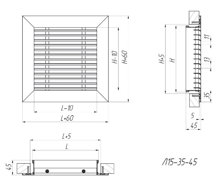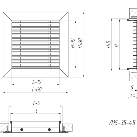 L15-35-45 - grătare liniare, pe un singur rând, nereglabile, cu un unghi de deviere a plăcii de 15°.