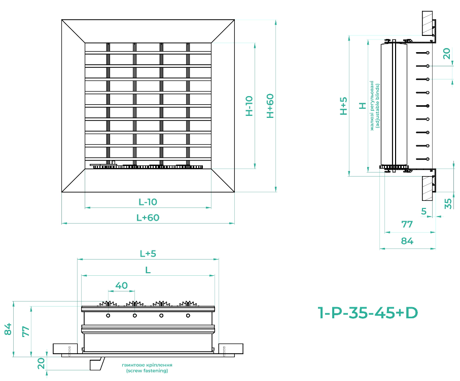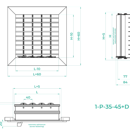 1-Р-35-45+D* (RAL-9016) 400x300h - montare cu o conexiune cu șurub (găurile de montare sunt situate pe partea din față a cadrului grilei), alb.