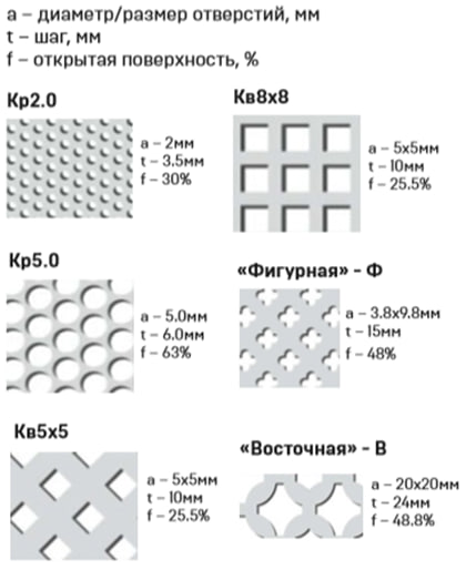 (-Sq 5x5) - "-" perforația nu este fixă, ci se află în canelurile cadrului, Tipul de perforație (Q - pătrat, 5x5 - dimensiunea celulei)
