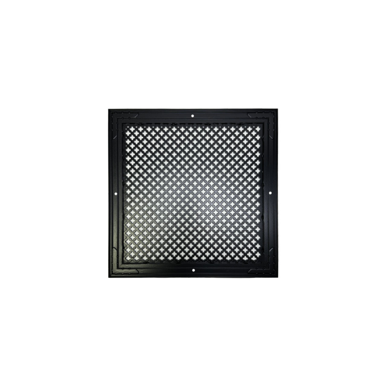 P-30-05* Kr 2.0 (RAL9016) 300x300 - cadru de acoperire cu grosimea de 5 mm, perforații rotunde cu un diametru al orificiilor de 2,0 mm, fixare cu șuruburi (orificiile de montare sunt situate pe partea frontală a cadrului grilei), alb.