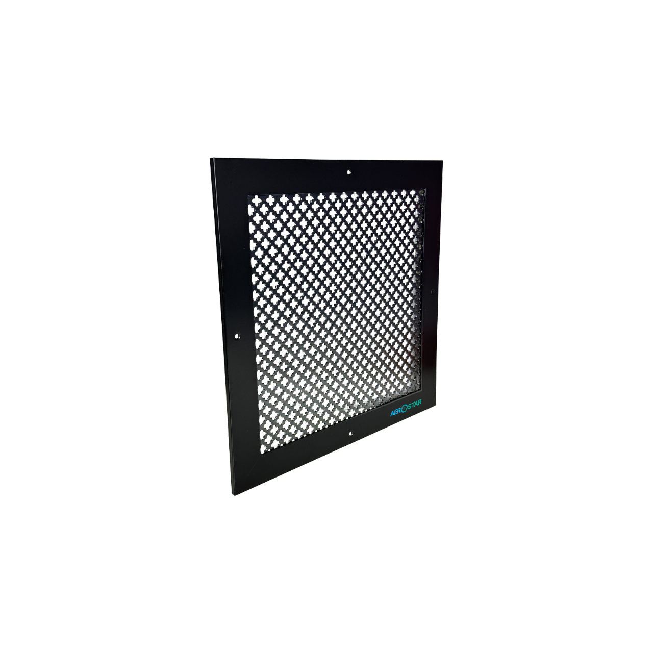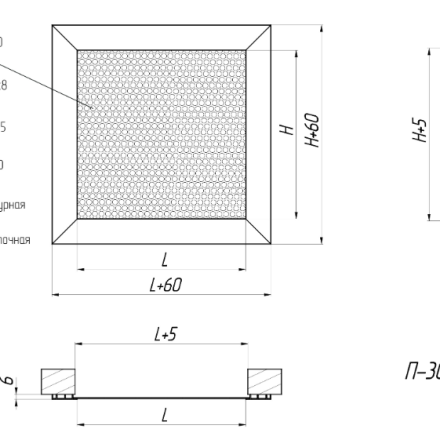 P-30-05* (-Kr 5.0) (RAL9016) 300x300 - cadru de acoperire cu grosimea de 5 mm, perforații rotunde cu un diametru al găurii de 5,0 mm, care nu este fixat pe cadru (-Kr 5.0), ci se află în canelurile cadrului, fixare cu șuruburi, alb.