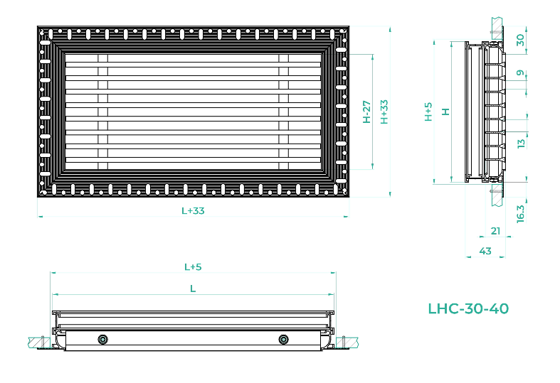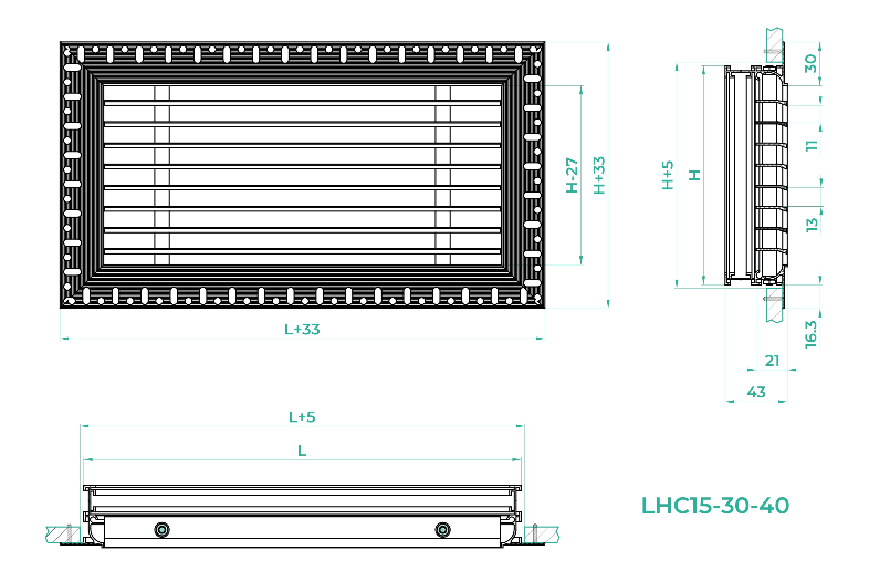 Grilele încastrate LHC-30-40, LHC-15-30-40 sunt utilizate în ventilația de alimentare și evacuare și în orice sistem de aer condiționat. Acestea sunt concepute pentru instalarea în pereți sau plafoane din gips-carton, oferind un aspect estetic excelent. Ele pot fi utilizate pentru alimentarea și evacuarea aerului.