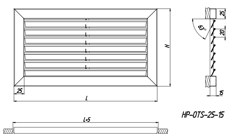 Grilele HP-OTS sunt alcătuite dintr-un cadru în formă de U, din metal galvanizat, în care sunt montate lamele nereglabile, care sunt instalate în canelurile lintelului. Acesta este conceput pentru alimentarea sau evacuarea aerului în sistemele de ventilație, încălzire a aerului și climatizare. Rama poate avea lățimi și adâncimi diferite, cu restricții minime și maxime. Lamele sunt fabricate din profile de aluminiu de înaltă calitate, care sunt acoperite cu vopsea pulbere, care asigură o protecție fiabilă împotriva factorilor de mediu negativi și previne uzura prematură a produsului.