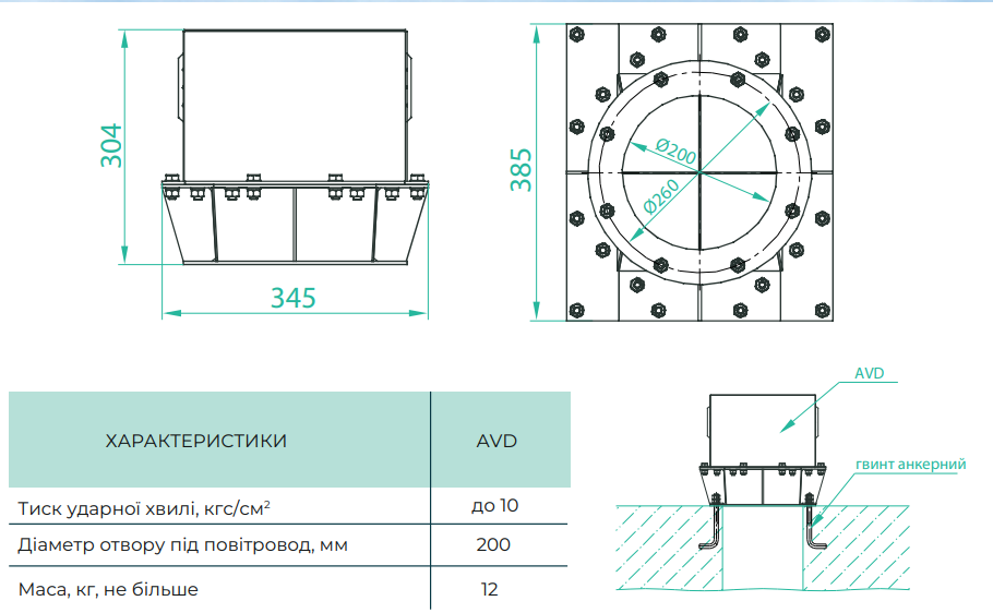 Adaptorul special este conectat la o conductă cu diametrul de 200 mm folosind o flanșă adecvată. Carcasa cu secțiunea de protecție mică AVD este fixată cu șuruburi pe adaptorul special.