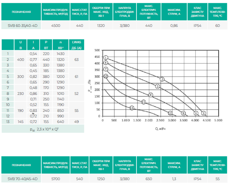 Ventilatoarele SVB sunt echipate cu motoare cu rotor extern cu clasa de protecție IP 44. Pentru a proteja ventilatorul împotriva supraîncălzirii, în înfășurările motorului sunt încorporate contacte termice cu terminale pentru conectarea unui dispozitiv extern de protecție a motorului.