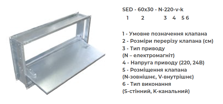 Corpul și paleta supapei sunt realizate din tablă de oțel galvanizat. Pentru supapele montate pe perete, actuatoarele sunt instalate în interiorul corpului. Pentru supapele de conductă, actuatoarele pot fi instalate atât în exterior, cât și în interiorul corpului.
