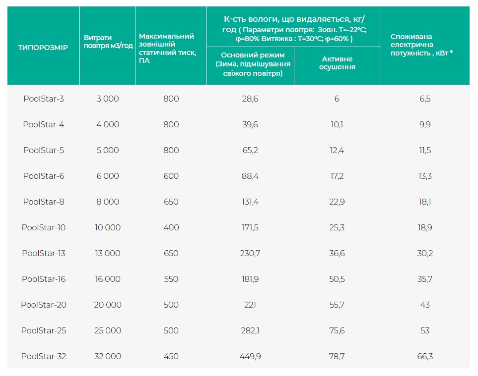 Conceput pentru condițiile în care nu există persoane în camera piscinei și nu se eliberează umiditate, oglinda de apă este acoperită sau nu există apă.
