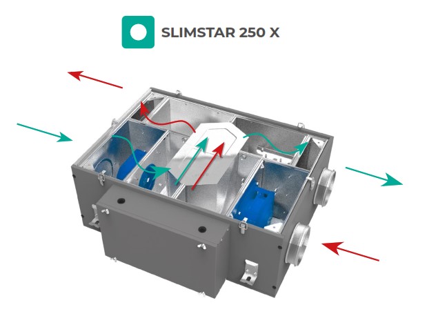 Unitate compactă multifuncțională de alimentare și evacuare, montată pe tavan, cu aer de recuperare. Toate tipurile de spații, cum ar fi case particulare, apartamente, restaurante, saloane, ateliere, școli, clădiri de birouri și chiar camere curate cu cerințe ridicate de aer.