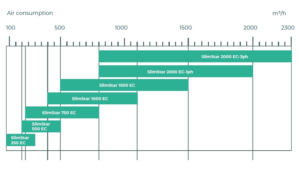 Ventilatoarele centrifugale EC de alimentare și evacuare cu palete curbate în sens invers sunt foarte eficiente din punct de vedere energetic. Acestea sunt caracterizate de performanțe ridicate și de o funcționare silențioasă.