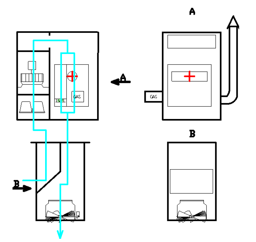 Aerul încălzit de arzătorul cu gaz este aspirat din exterior și nu necesită o cameră a cazanului sau o rețea de distribuție a apei calde.