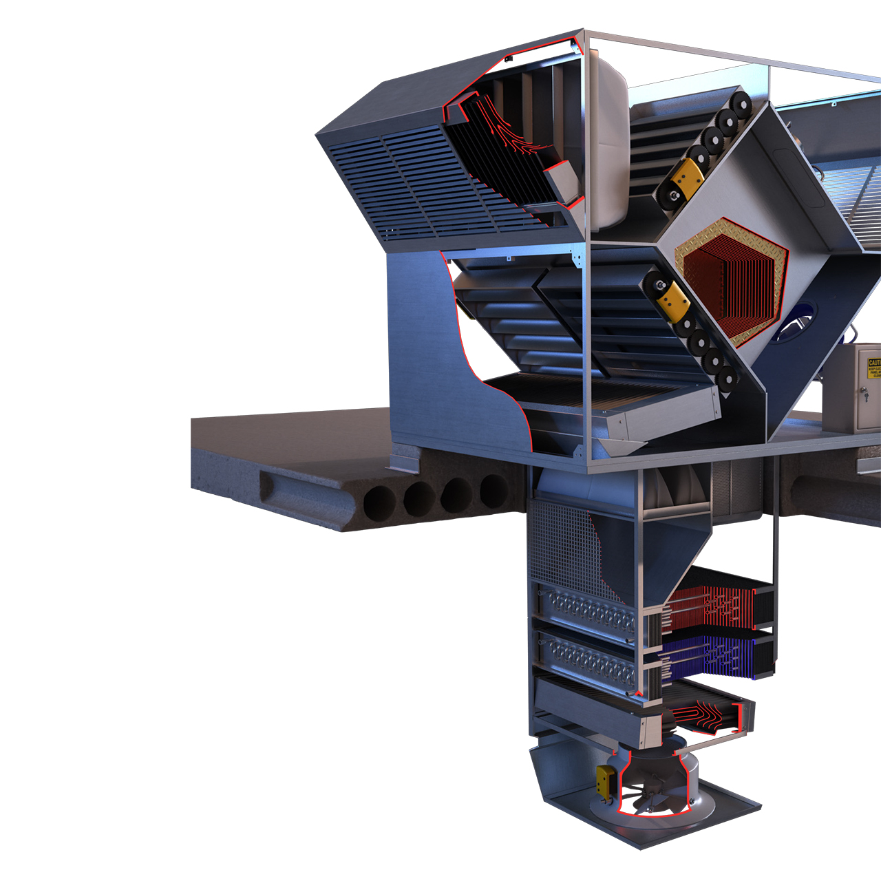 Aceste soluții tehnice vizează eficiența energetică, economisirea spațiului utilizabil și a costurilor de instalare și exploatare, datorită principiului de implementare a unității ca unitate de ventilație a acoperișului.