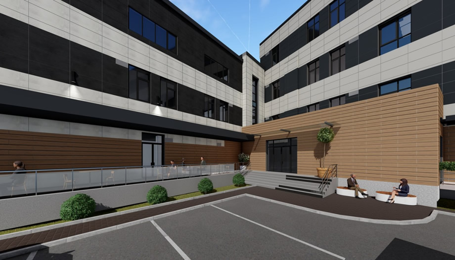Діловий центр складається з трьох офісних корпусів, площею 3000 кв.м, 1700 кв.м і 4000 кв.м.