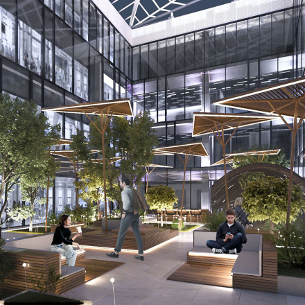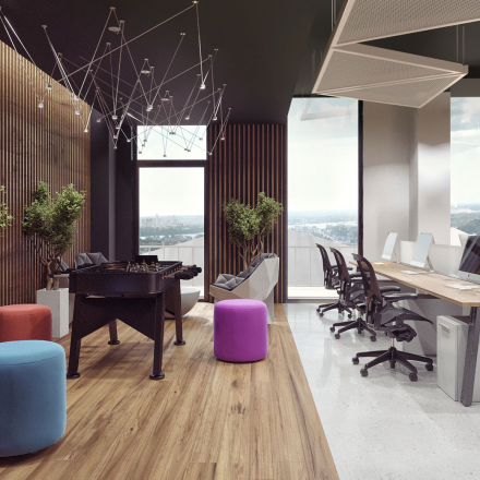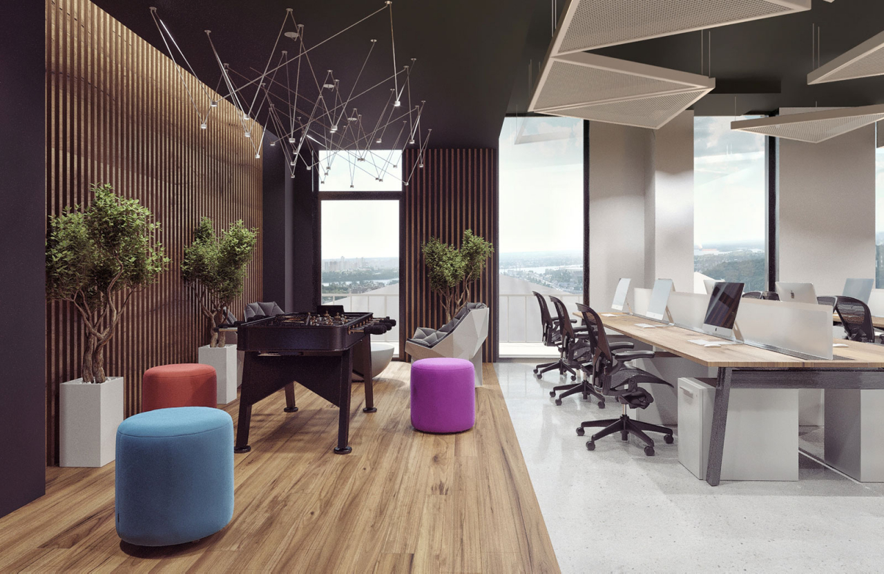 Оригінальна архітектура відповідає якісному наповненню. Окрім офісів та коворкінгу у Space4 буде відкритий спортклуб з басейнами, тераси для відпочинку, у тому числі на даху.